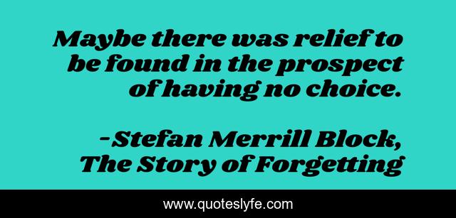 This page presents the quote "Maybe there was relief to be found in the prospect of having no choice.". Author of this quote is Stefan Merrill Block, The Story of Forgetting. .