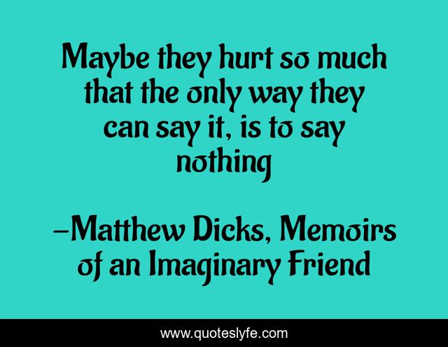 "Matthew Dicks, Memoirs of an Imaginary Friend Quotes." Quoteslyfe.com, 2025. Fri. 05 Dec. 2025. <https://www.quoteslyfe.com/quote/Maybe-they-hurt-so-much-that-the-168880>.