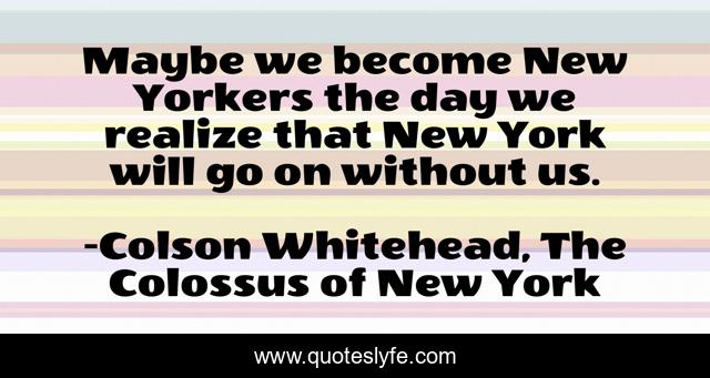 This page presents the quote "Maybe we become New Yorkers the day we realize that New York will go on without us.". Author of this quote is Colson Whitehead, The Colossus of New York. .