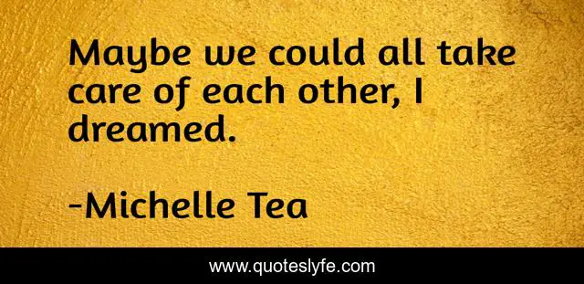 This page presents the quote "Maybe we could all take care of each other, I dreamed.". Author of this quote is Michelle Tea. .