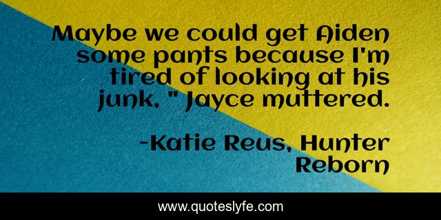 This page presents the quote "Maybe we could get Aiden some pants because I'm tired of looking at his junk, " Jayce muttered.". Author of this quote is Katie Reus, Hunter Reborn. This quote is about shifters, paranormal-romance, vampires,.