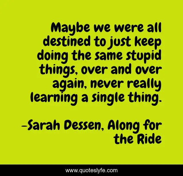This page presents the quote "Maybe we were all destined to just keep doing the same stupid things, over and over again, never really learning a single thing.". Author of this quote is Sarah Dessen, Along for the Ride. This quote is about life, destined, people, stupid-things, learning, lesson,.