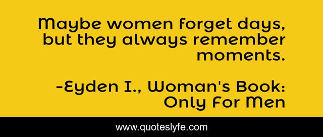 "Eyden I., Woman's Book: Only For Men Quotes." Quoteslyfe.com, 2025. Sat. 06 Dec. 2025. <https://www.quoteslyfe.com/quote/Maybe-women-forget-days-but-they-always-59138>.