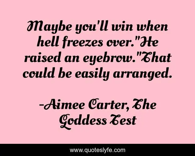 This page presents the quote "Maybe you'll win when hell freezes over."He raised an eyebrow."That could be easily arranged.". Author of this quote is Aimee Carter, The Goddess Test. .
