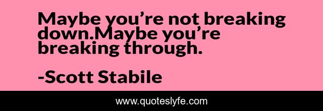 This page presents the quote "Maybe you’re not breaking down.Maybe you’re breaking through.". Author of this quote is Scott Stabile. This quote is about life, love, motivation, breaking-through, breaking-down, affection, inspiration,.