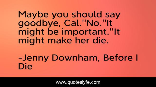 "Jenny Downham, Before I Die Quotes." Quoteslyfe.com, 2025. Mon. 08 Dec. 2025. <https://www.quoteslyfe.com/quote/Maybe-you-should-say-goodbye-Cal-No-21096>.