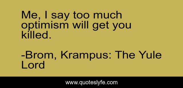 This page presents the quote "Me, I say too much optimism will get you killed.". Author of this quote is Brom, Krampus: The Yule Lord. This quote is about failure, hope, optimism,.