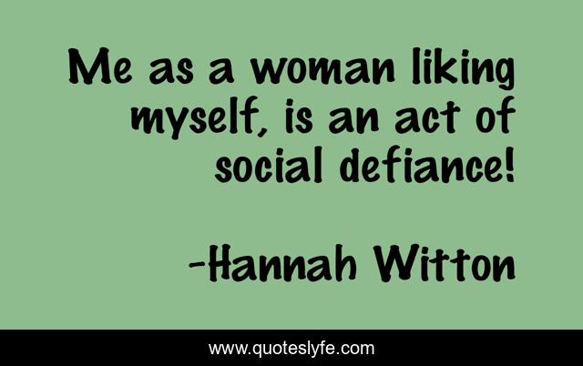 This page presents the quote "Me as a woman liking myself, is an act of social defiance!". Author of this quote is Hannah Witton. This quote is about feminism, political-statement, women,.