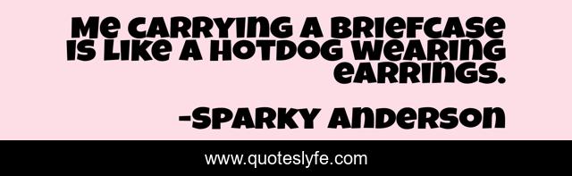 This page presents the quote "Me carrying a briefcase is like a hotdog wearing earrings.". Author of this quote is Sparky Anderson. This quote is about me, earrings, like,.