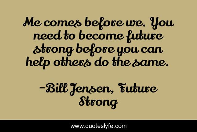 This page presents the quote "Me comes before we. You need to become future strong before you can help others do the same.". Author of this quote is Bill Jensen, Future Strong. This quote is about enthusiasm, future, leadership, inspirational, self-help,.
