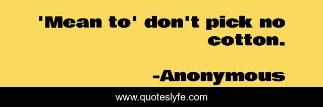 This page presents the quote "'Mean to' don't pick no cotton.". Author of this quote is Anonymous. .