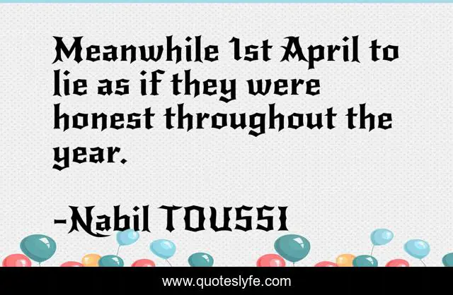 "Nabil TOUSSI Quotes." Quoteslyfe.com, 2025. Fri. 05 Dec. 2025. <https://www.quoteslyfe.com/quote/Meanwhile-1st-April-to-lie-as-if-166074>.