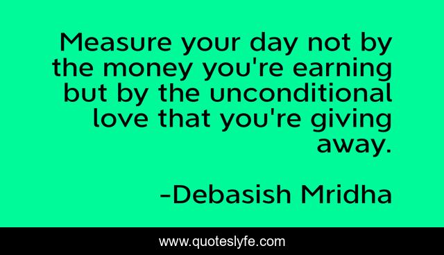 Measure your day not by the money you're earning but by the unconditional love that you're giving away.