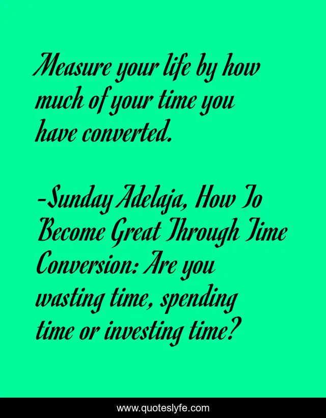 "Sunday Adelaja, How To Become Great Through Time Conversion: Are you wasting time, spending time or investing time? Quotes." Quoteslyfe.com, 2025. Fri. 05 Dec. 2025. <https://www.quoteslyfe.com/quote/Measure-your-life-by-how-much-of-39116>.