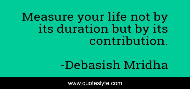 This page presents the quote "Measure your life not by its duration but by its contribution.". Author of this quote is Debasish Mridha. This quote is about miraboli, measure-your-life, your-life-contribution, oscar-wilde, philosophy, debasish-mridha, your-life, quotes, debasish-mridha-md,.