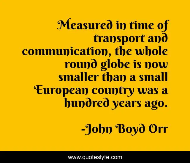 "John Boyd Orr Quotes." Quoteslyfe.com, 2025. Fri. 05 Dec. 2025. <https://www.quoteslyfe.com/quote/Measured-in-time-of-transport-and-communication-288510>.