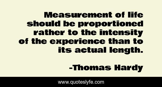 This page presents the quote "Measurement of life should be proportioned rather to the intensity of the experience than to its actual length.". Author of this quote is Thomas Hardy. .