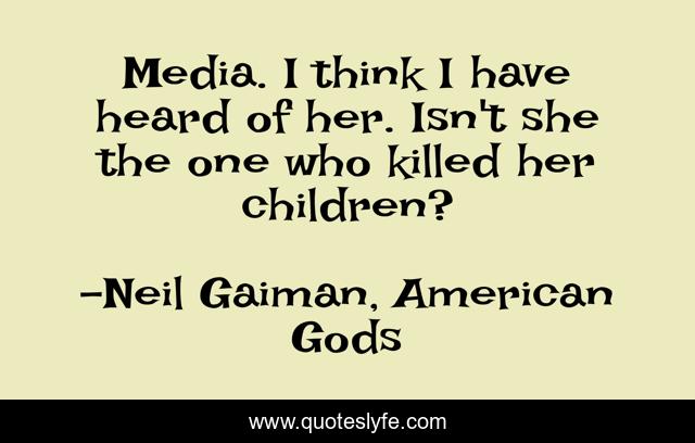 This page presents the quote "Media. I think I have heard of her. Isn't she the one who killed her children?". Author of this quote is Neil Gaiman, American Gods. This quote is about media, fame,.