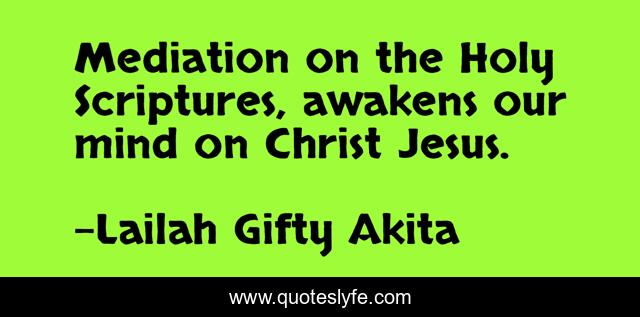 This page presents the quote "Mediation on the Holy Scriptures, awakens our mind on Christ Jesus.". Author of this quote is Lailah Gifty Akita. This quote is about jesus-christ, mediation, mind, inspirational, enthusiasm, christians,.