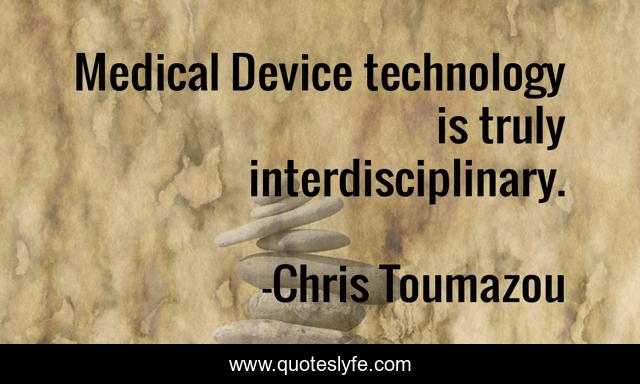 This page presents the quote "Medical Device technology is truly interdisciplinary.". Author of this quote is Chris Toumazou. This quote is about device, technology, truly,.