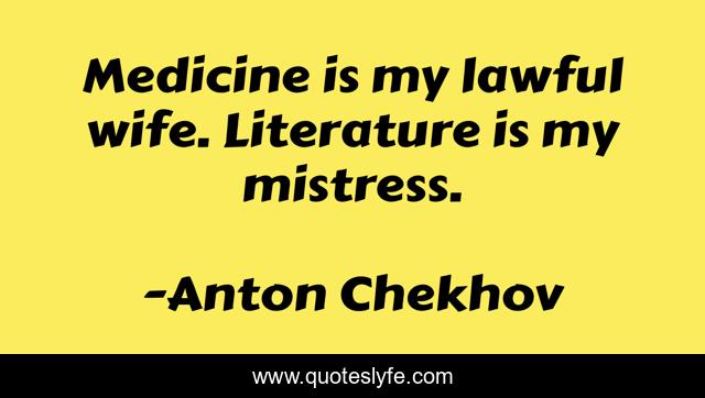 This page presents the quote "Medicine is my lawful wife. Literature is my mistress.". Author of this quote is Anton Chekhov. .
