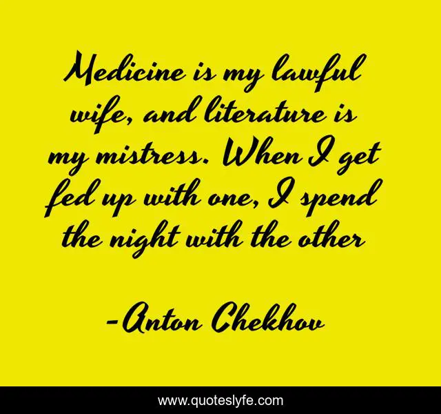 "Anton Chekhov Quotes." Quoteslyfe.com, 2025. Sun. 07 Dec. 2025. <https://www.quoteslyfe.com/quote/Medicine-is-my-lawful-wife-and-literature-111738>.
