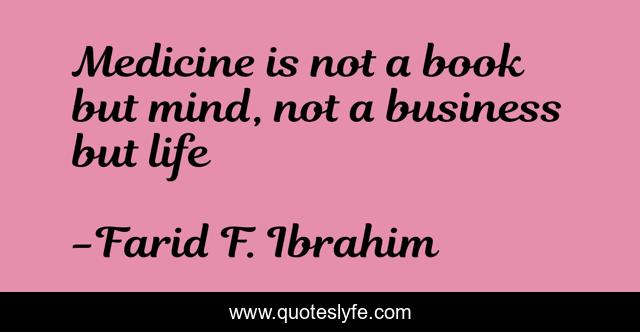 This page presents the quote "Medicine is not a book but mind, not a business but life". Author of this quote is Farid F. Ibrahim. This quote is about medicine, mind, clinicians, life-lessons,.