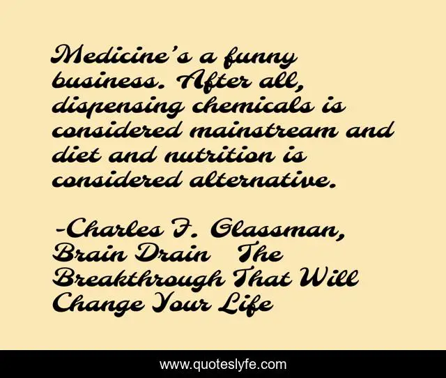 "Charles F. Glassman, Brain Drain The Breakthrough That Will Change Your Life Quotes." Quoteslyfe.com, 2025. Fri. 05 Dec. 2025. <https://www.quoteslyfe.com/quote/Medicine-s-a-funny-business-After-all-243224>.