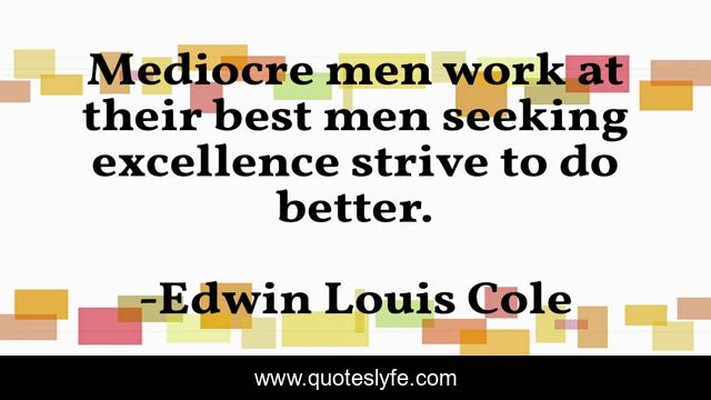 This page presents the quote "Mediocre men work at their best men seeking excellence strive to do better.". Author of this quote is Edwin Louis Cole. This quote is about men, excellence, best,.