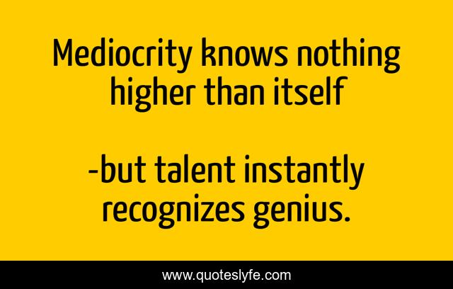 "but talent instantly recognizes genius. Quotes." Quoteslyfe.com, 2025. Sat. 06 Dec. 2025. <https://www.quoteslyfe.com/quote/Mediocrity-knows-nothing-higher-than-itself-230185>.
