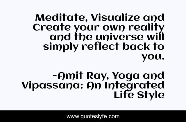 This page presents the quote "Meditate, Visualize and Create your own reality and the universe will simply reflect back to you.". Author of this quote is Amit Ray, Yoga and Vipassana: An Integrated Life Style. .