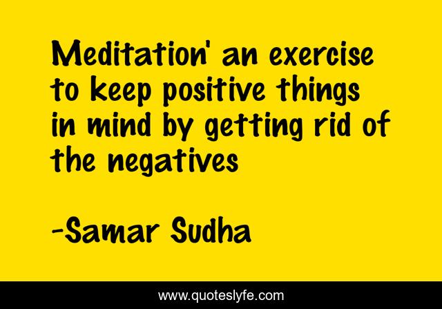This page presents the quote "Meditation' an exercise to keep positive things in mind by getting rid of the negatives". Author of this quote is Samar Sudha. This quote is about meditation, positivity, negativity,.