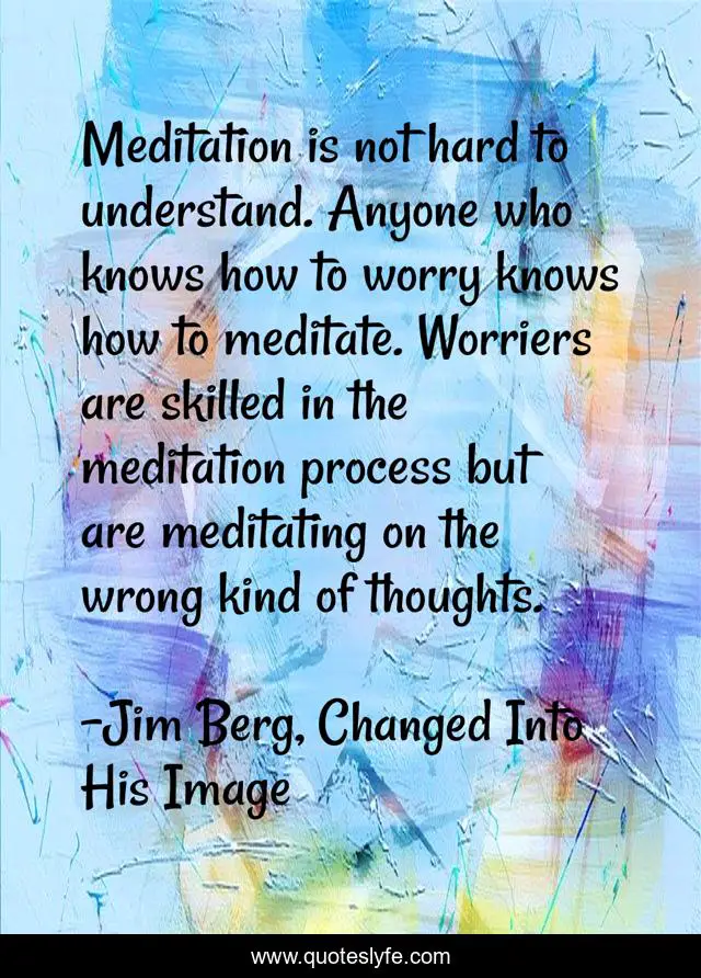 This page presents the quote "Meditation is not hard to understand. Anyone who knows how to worry knows how to meditate. Worriers are skilled in the meditation process but are meditating on the wrong kind of thoughts.". Author of this quote is Jim Berg, Changed Into His Image. This quote is about meditation, worry,.