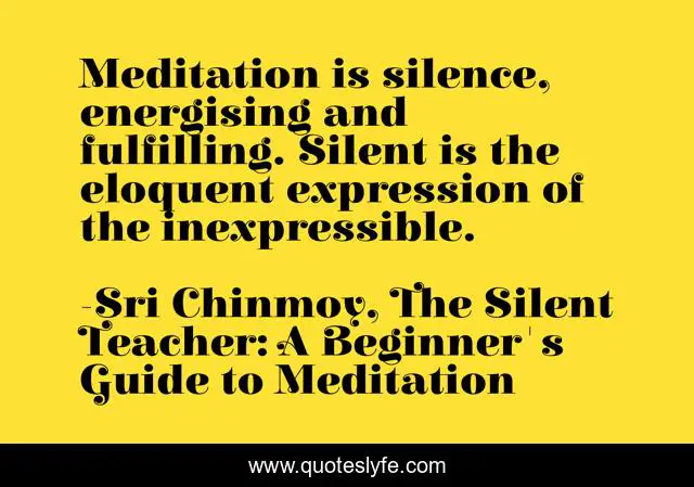 "Sri Chinmoy, The Silent Teacher: A Beginner's Guide to Meditation Quotes." Quoteslyfe.com, 2025. Sat. 06 Dec. 2025. <https://www.quoteslyfe.com/quote/Meditation-is-silence-energising-and-fulfilling-Silent-117636>.
