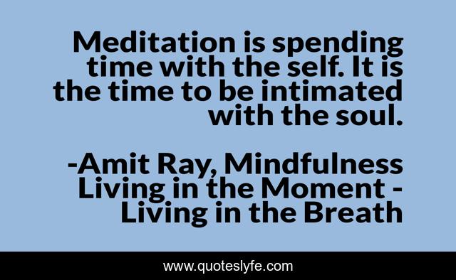"Amit Ray, Mindfulness Living in the Moment - Living in the Breath Quotes." Quoteslyfe.com, 2025. Sat. 06 Dec. 2025. <https://www.quoteslyfe.com/quote/Meditation-is-spending-time-with-the-self-63617>.