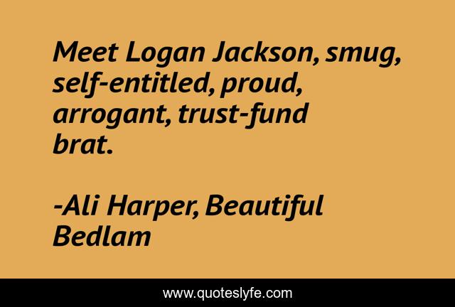 "Ali Harper, Beautiful Bedlam Quotes." Quoteslyfe.com, 2025. Sat. 06 Dec. 2025. <https://www.quoteslyfe.com/quote/Meet-Logan-Jackson-smug-self-entitled-proud-155194>.