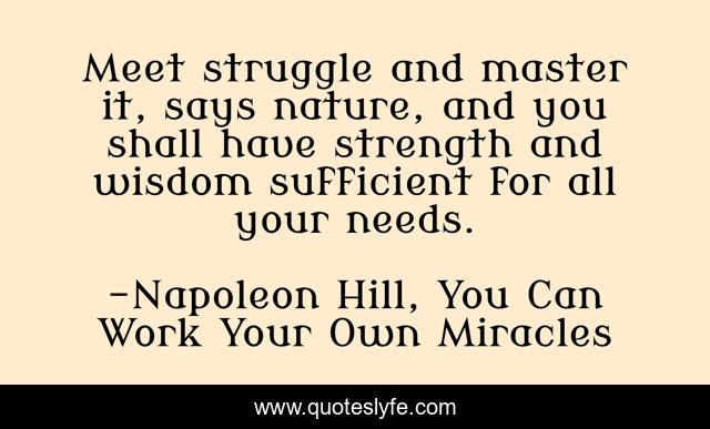 "Napoleon Hill, You Can Work Your Own Miracles Quotes." Quoteslyfe.com, 2025. Mon. 08 Dec. 2025. <https://www.quoteslyfe.com/quote/Meet-struggle-and-master-it-says-nature-104750>.