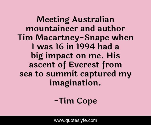 "Tim Cope Quotes." Quoteslyfe.com, 2025. Tue. 09 Dec. 2025. <https://www.quoteslyfe.com/quote/Meeting-Australian-mountaineer-and-author-Tim-Macartney-317753>.