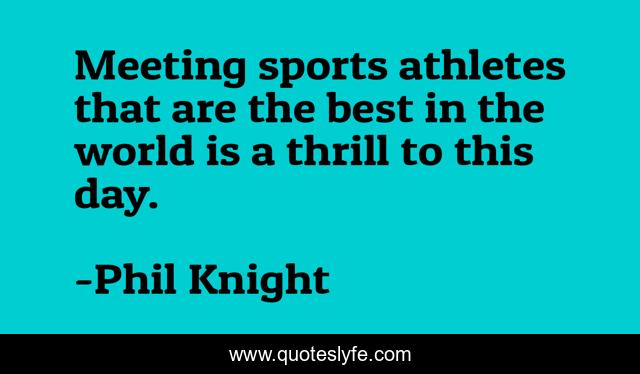 This page presents the quote "Meeting sports athletes that are the best in the world is a thrill to this day.". Author of this quote is Phil Knight. This quote is about world, day, best,.