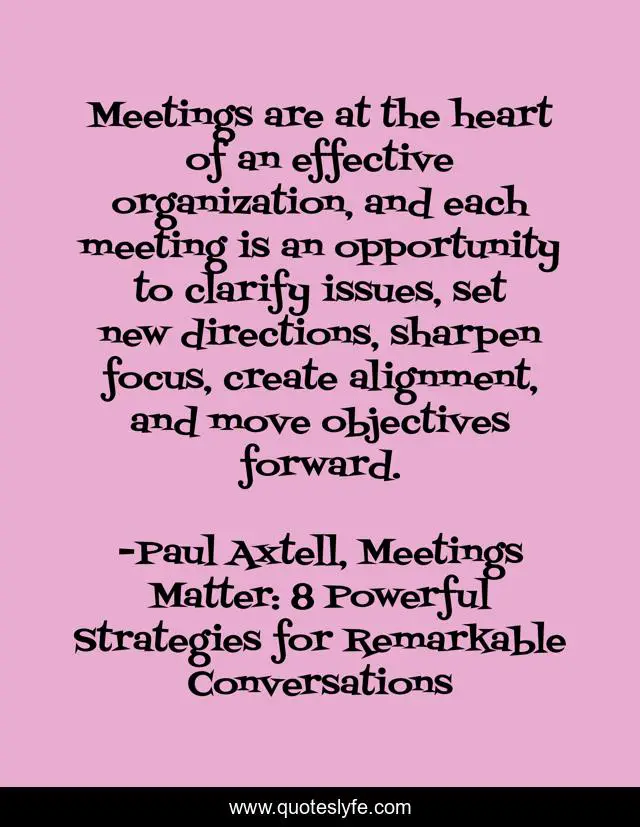 "Paul Axtell, Meetings Matter: 8 Powerful Strategies for Remarkable Conversations Quotes." Quoteslyfe.com, 2025. Fri. 05 Dec. 2025. <https://www.quoteslyfe.com/quote/Meetings-are-at-the-heart-of-an-209588>.