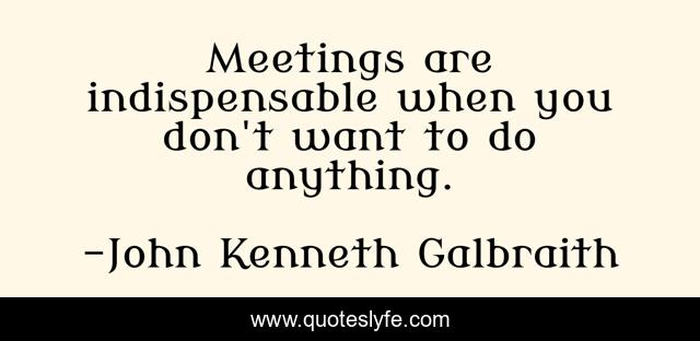 "John Kenneth Galbraith Quotes." Quoteslyfe.com, 2025. Sat. 06 Dec. 2025. <https://www.quoteslyfe.com/quote/Meetings-are-indispensable-when-you-don-t-281481>.