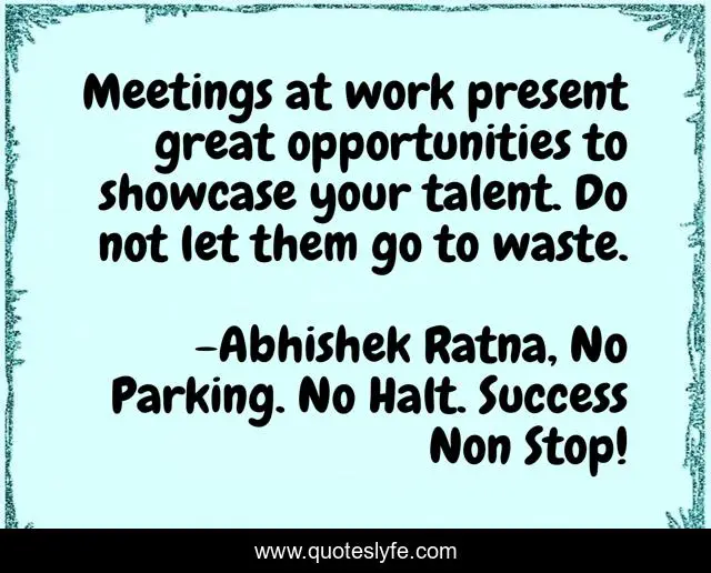 "Abhishek Ratna, No Parking. No Halt. Success Non Stop! Quotes." Quoteslyfe.com, 2025. Tue. 09 Dec. 2025. <https://www.quoteslyfe.com/quote/Meetings-at-work-present-great-opportunities-to-257430>.