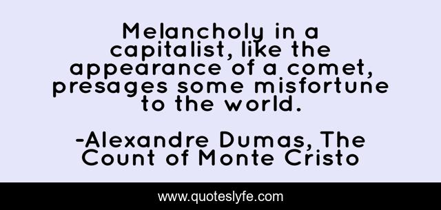 This page presents the quote "Melancholy in a capitalist, like the appearance of a comet, presages some misfortune to the world.". Author of this quote is Alexandre Dumas, The Count of Monte Cristo. .