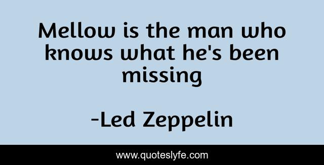 This page presents the quote "Mellow is the man who knows what he's been missing". Author of this quote is Led Zeppelin. This quote is about led-zepplin, music, rock,.
