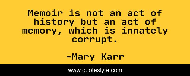 This page presents the quote "Memoir is not an act of history but an act of memory, which is innately corrupt.". Author of this quote is Mary Karr. This quote is about memoir, memory,.