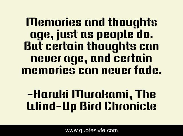 This page presents the quote "Memories and thoughts age, just as people do. But certain thoughts can never age, and certain memories can never fade.". Author of this quote is Haruki Murakami, The Wind-Up Bird Chronicle. .