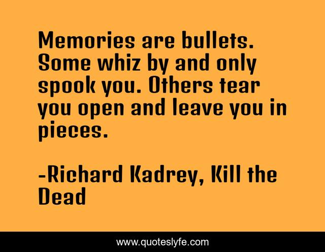 "Richard Kadrey, Kill the Dead Quotes." Quoteslyfe.com, 2025. Sat. 06 Dec. 2025. <https://www.quoteslyfe.com/quote/Memories-are-bullets-Some-whiz-by-and-75412>.
