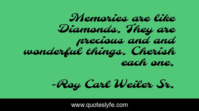 This page presents the quote "Memories are like Diamonds. They are precious and and wonderful things. Cherish each one.". Author of this quote is Roy Carl Weiler Sr.. .