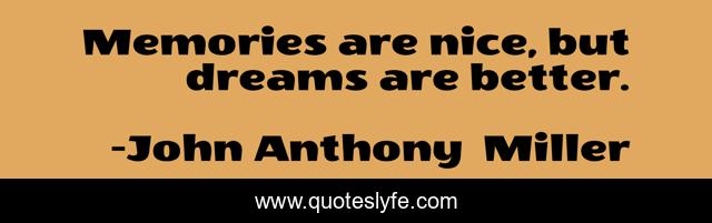 "John Anthony Miller Quotes." Quoteslyfe.com, 2025. Fri. 05 Dec. 2025. <https://www.quoteslyfe.com/quote/Memories-are-nice-but-dreams-are-better-237093>.