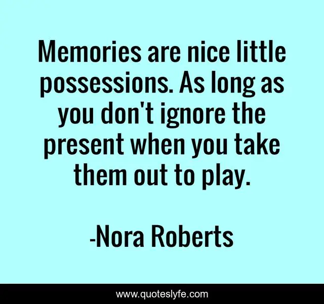 "Nora Roberts Quotes." Quoteslyfe.com, 2025. Mon. 08 Dec. 2025. <https://www.quoteslyfe.com/quote/Memories-are-nice-little-possessions-As-long-132731>.